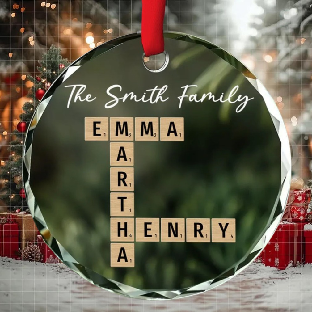 Family Besties Coworker Crossword Art Personalized Custom Glass Ornament Christmas Gift For Family Memmber